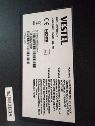 Televisor Vestel de 43 pulgadas, ideal para hoteles. Solo sintoniza TDT, no es Smart TV. - Pantalla de 43 pulgadas. - Sintonizador TDT integrado