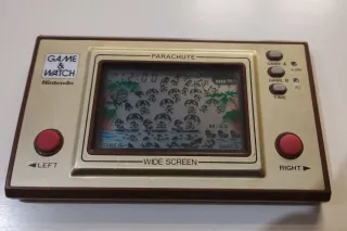 Consola portátil clásica Game & Watch. - Pantalla OK, sin sangrado. - Tapa de pilas original - Conserva número de serie - Modelo Parachute. - Diseño Wide Screen. - Botones de control Left y Right.