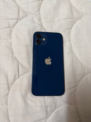 Teléfono móvil iPhone 12 en color azul marino de 128gb. Se vende con cristal protector ya puesto. Funciona bien. Tiene algunas pequeñas rozaduras en los laterales (se ve en las fotos). No viene con caja. Tiene 74 % de salud de bateria.