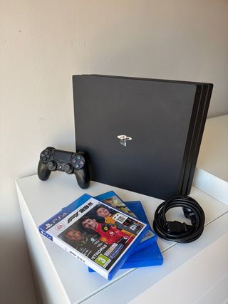 Consola en muy buen estado, 1 TB de almacenamiento, funciona perfectamente - Incluye 2 mandos DualShock 4. - Juegos: F1 23, Fifa 2017 y Gran turismo 7 - Cable de alimentación y cable de carga USB