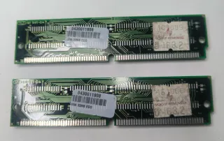 Se venden dos módulos de memoria RAM SIMM EDO de 32MB cada uno, sumando un total de 64MB. - Tipo de memoria: SIMM EDO - Capacidad por módulo: 32MB - Capacidad total: 64MB - Fabricante: SEC KOREA