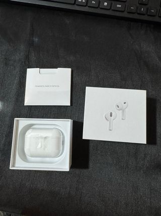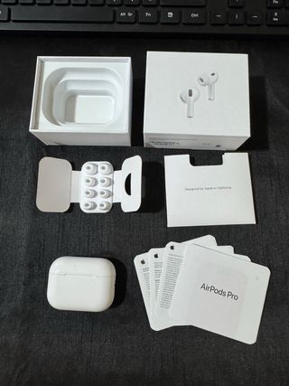 Auriculares inalambricos AirPods Pro 3 en color blanco. Incluyen su estuche de carga y accesorios. - Estuche de carga. - Auriculares AirPods Pro. - Almohadillas de diferentes tamaños.