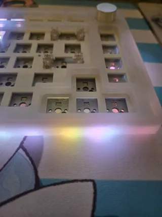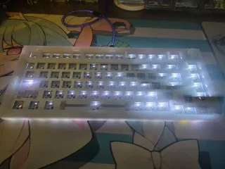 Kit para ensamblar un teclado mecánico en formato 75%. Tiene dos led que han perdido el color azul - Carcasa de material translúcido. - Diseño compacto y moderno. - Incluye placa y estabilizadores.