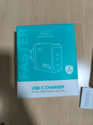 Cargador rápido USB-C de 100W. - Modelo: AI-641 PowerCube Duo. - Doble puerto USB-C.