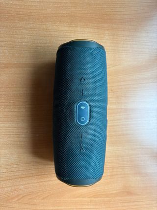 JBL Charge 4 azul, en perfectas condiciones. Funciona como el primer día, no tiene mucho uso por lo que la batería esta como nueva. Unico desperfecto es que la tela de fuera esta ligeramente destensada en una pequeña area de atrás.