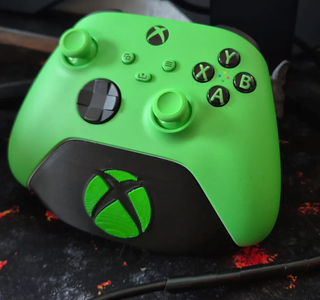 Soporte para mando de Xbox con un diseño llamativo en color verde y negro. Presenta el icónico logo de Xbox. - Color principal: verde brillante. - Detalles en negro mate. - Logo de Xbox en relieve.
