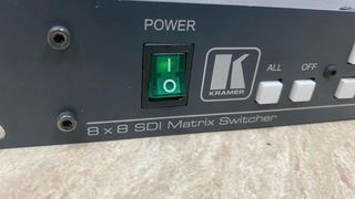Conmutador matricial Kramer 8x8 SDI. - Modelo: BO-7522V - Botones de selección de entrada y salida. - Indicador LED de estado.