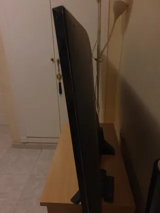 Televisión de pantalla grande. - Diseño moderno y elegante. - Soporte curvo. Se enciende pero no se ve en la pantalla, está para arreglar, le empezaron a salir manchas negras y después y no se veía nada pero se escucha cuando está encendida y todo
