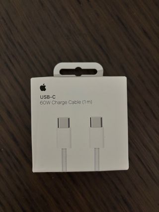 Cable de carga USB-C de Apple con conector USB-C en ambos extremos. - Longitud de 1 metro. - Soporta carga de hasta 60W. Nuevo sin usar.