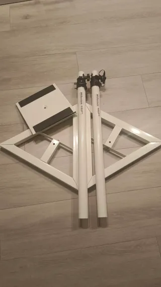 Soportes para monitores de estudio en color blanco. Totalmente desmontable y estables para soporte monitores o cualquier otro dispositivos. En Thomann 49€ - Marca: Milenium - Color: Blanco