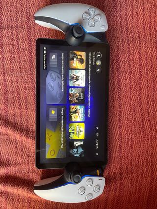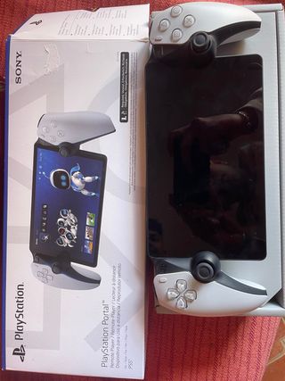 Dispositivo de juego portátil Sony PlayStation Portal en color blanco. - Pantalla integrada. - Mandos acoplables a ambos lados de la pantalla. - Diseño ergonómico. - Se vende a ese precio por que tiene suscripción de un año de plus con lo consola vence en enero