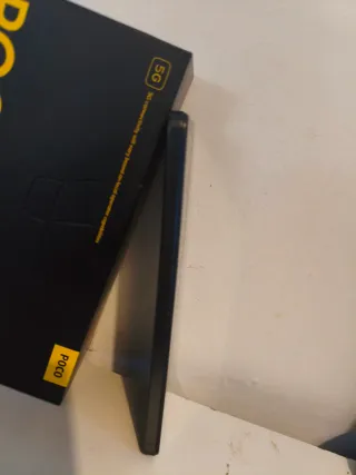 Teléfono móvil Poco X5 Pro 5G en color negro. Con caja original y funda transparente -esta un poco doblado por el uso pero no afecta a su rendimiento -en este modelo no se puede mirar el porcentaje exacto de la batería pero está en buen estado (el de un año de uso).