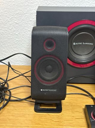 Vendo altavoces Altec Lansing VS2421 con subwoofer, sistema 2.1. Sonido potente y de buena calidad Subwoofer con buenos graves Funcionan correctamente Ideales para PC, portátil o equipo multimedia Se venden tal y como se ven en las fotos. 📸 Buen estado general, con el desgaste normal del uso. 📍 Entrega en mano o envío por Wallapop