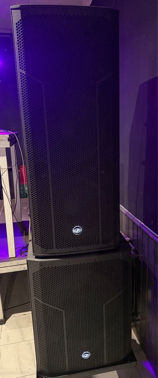 2 x Altavoces activos Electro-Voice ELX 115P - 700€/unidad 2 x Sibgraces activos ElectroVoice ELX 118P - 800€/unidad Sistema de sonido entero 3.000€ Amplificados y muy potentes. Cajas de madera, suenan muy bien. Se entregan solo con prueba. ElectroVoice ELX-115P Respuesta de frecuencia (-3 dB): 56 - 18000Hz. SPL máximo/1m (calculado): 134dB. Cobertura nominal (6 dB) H: 90°. Transductor de baja frecuencia: (1) EVS-15K, woofer de 381mm Potencia nominal: 1000W. Electrovoice ELX-118P Altavoz de graves de 18". Amplificador Clase D de 700W RMS. Respuesta en frecuencia: 35Hz-130Hz. Máxima SPL: 134dB.