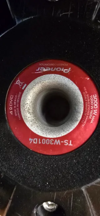 Subwoofer Pioneer con una potencia máxima de 3000W y 1000W RMS champion series. En perfecto estado, marcas de arañazos muy pequeñas en el marco, membranas perfectas, doble bobina de 4 omnios. - Color negro y plateado.