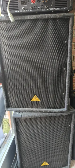 Se venden altavoces Behringer de 1200W junto con su etapa de potencia. - Altavoces de color negro. - Etapa de potencia incluida.
