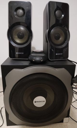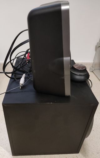 Juego de dos alravoces con subwofer 2.1, tiene una peculiaridad, y es que al encenderlo hsce ruido hasta que le coges el punto y deja de hacerlo, para un manitas lo soluciona, suenan bien