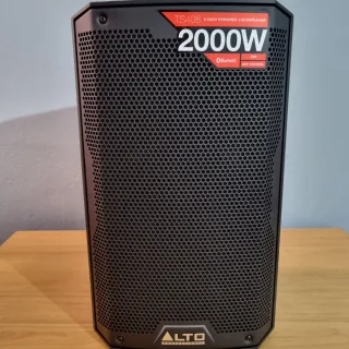 Altavoz profesional Alto TS410 en color negro. Potencia de 2000w - Altavoz de 2 vías xlr. - Conectividad Bluetooth. - Entradas XLR y TRS. - Salida XLR. Tiene marcas y rayones del uso, no afecta en absoluto a su funcionamiento. Suena perfecto. Se entrega con cable.