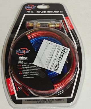 Kit de instalación de amplificador KaiBoYi, nuevo. Ideal para amantes del car audio. Kit de cableado de altavoces de Audio para coche, amplificador de potencia de 1500W, 8GA, 60 AMP, portafusibles, línea de Audio de coche, 18GA, piezas de vehículos Kit de cableado para amplificador de coche de 1500W/2000W. Incluye cableado de al Kit de instalación de amplificador KaiBoYi MD-8, con potencia máxima de 1500 Watts. - Cable de alimentación transparente rojo 8GA con portafusibles AGU. - Cable de tierra negro transparente 8GA. - Cable de control remoto azul 18GA. - Cable de interconexión RCA dorado 5M. - Todos los accesorios incluidos.