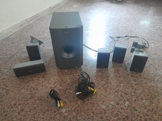 Juego de altavoces de la marca Philips compuesto por 5 canales y 1 subwoofer. Funciona correctamente.