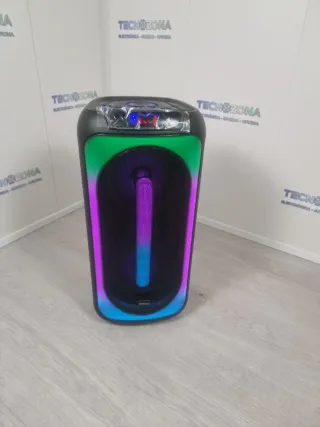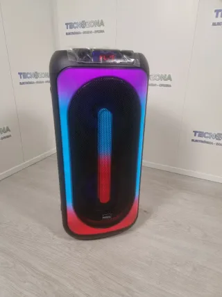 Altavoz de sonido potente con doble subwoofer. - Potencia de 500W. - Diseño moderno en color negro y detalles en rojo. - Soporta Bluetooth, Radio (sintonizada directamente), USB (para MP3). - Sin apenas uso, casi nuevo. - Luces LED que se pueden quitar o poner - Importante destacar que NO TIENE BATERÍA, funciona sólo encendido a la corriente elétrica. - Ideal para fiestas y eventos. - IMPORTANTE: Se entrega FÍSICAMENTE en Asturias. No se hace envío.