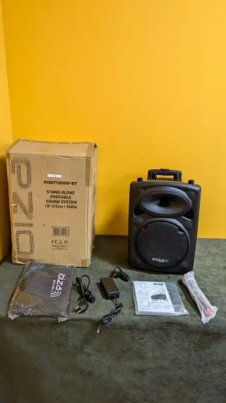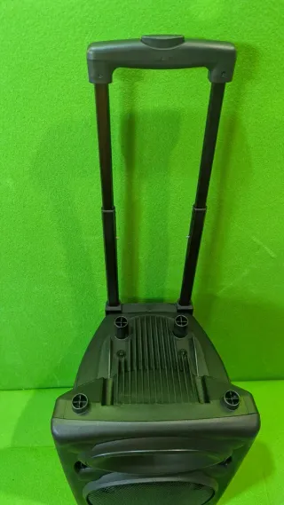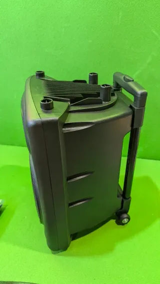 Altavoz portátil Ibiza PORT10VHF-BT con ruedas y asa extensible. - Altavoz de 10 pulgadas. - Potencia de 500W. - Incluye dos micrófonos inalámbricos. - Mando a distancia. Ha tenido muy poco uso.