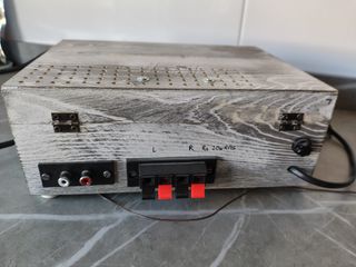 Amplificador de audio con radio FM y reproductor MP3. - Potencia de 20W + 20W sobre 8 ohmios. - Reproduce archivos MP3 desde USB y tarjeta SD/MMC. - Incluye sintonizador de radio FM. - Entrada auxiliar (AUX).