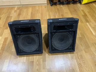 Par de altavoces pasivos Pyle Pro PDAH879 en buen estado. Son compactos y resistentes. - Sistema de 2 vías. - Un altavoz de agudos de bocina super X7" de 3". - Un subwoofer de 8". - Potencia: 150W RMS, 300W pico. - Respuesta de frecuencia: 50-20 kHz. - Impedancia: 8 ohmios. Solo esta semana 90€ Par de monitores pequeños (sin marca) - Sistema 3 vias. - Altavoz de agudos de 1". - Altavoz de medios de 5'25". - Subwoofer de 8". - Potencia 100W RMS, 200W pico. - Frecuencia 50-20kHz. - Impedancia 8 ohmios. Solo esta semana 75€ Los 4 altavoces 150€
