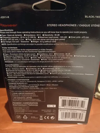 Auriculares deportivos Pioneer SE-E511-K en color negro. Diseñados para el deporte y la actividad física. - Modelo: SE-E511-K - Longitud del cable: 1.2 m - Tipo: Auriculares estéreo