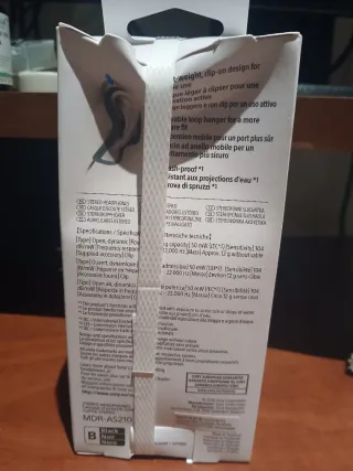 Auriculares deportivos Sony MDR-AS210 diseñados para el movimiento. - Modelo MDR-AS210. - Ideales para actividades deportivas. - La caja esta abollada por el precinto.