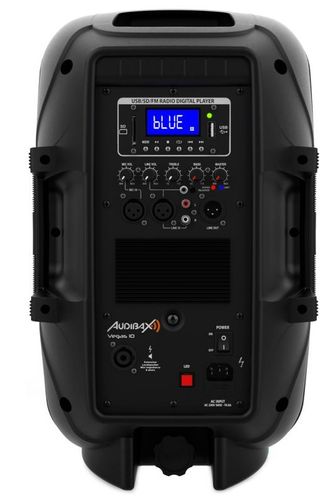 PRODUCTO NUEVO EN SU CAJA Altavoz activo de 2 vías. Woofer 10" + 1 Motor 1" Compresión Conexión y reproducción USB/SD Conexión Bluetooth. Radio FM Tamaño : 10 Pulgadas Respuesta de frecuencia: 55Hz-20KHz Sensibilidad: 95 dB Impedancia: 8 Ohm Entrada Micrófono Line In XLR marca: audibax Potencia: 100W RMS- 200W de pico Medidas:305x255x490mm