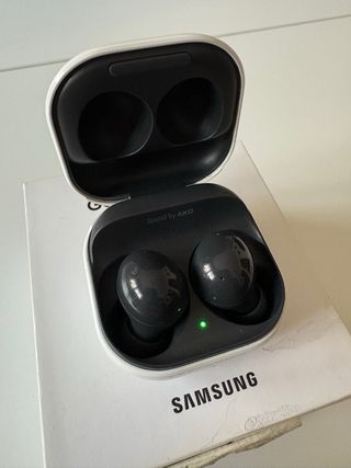 Vendo Samsung Galaxy Buds 2 en perfecto estado. Están prácticamente nuevos, con todos los accesorios originales. Funcionan perfectamente, con excelente calidad de sonido y cancelación activa de ruido. Cuentan con hasta 5 horas de autonomía con una sola carga y un estuche de carga inalámbrica. Además, son resistentes al agua con clasificación IPX2, lo que los hace ideales para entrenamientos y actividades al aire libre. El motivo de la venta es que he cambiado a Apple, por lo que ya no los necesito. Realizo envíos a cualquier parte. Precio no negociable, regalo funda con ellos (siempre se han usado con ella). Tengo la caja original y todas las almohadillas de repuesto sin usar. ¡No dudes en preguntar si tienes alguna duda!