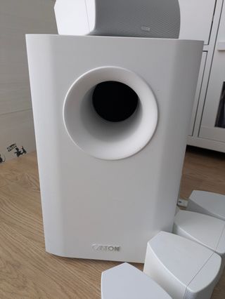 ¡Lleva el cine a tu salón! 🍿 Vendo conjunto 5.1 Canton Movie 95 en elegante color blanco. Sonido alemán de alta fidelidad, nítido y potente (620W). ✅ Estado: Muy bueno, muy bien cuidados. Uso de 2022 a 2026. ✅ Accesorios: Incluye manual y todos los accesorios originales. ⚠️ Embalaje: No conservo la caja original, pero se entrega perfectamente protegido. 🔈 Set de 4 altavoces satelite, 1 central y subworfer activo. Ideal para cine, series y gaming. Diseño compacto que encaja en cualquier decoración. ¡Una oportunidad para mejorar tu audio a precio de chollo! 🔊