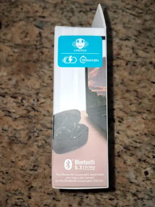 Echo Buds (2.ª gen.) blancos, con estuche cargador por cable USB Con muy poco uso. Solo envíos. En su caja original y con todos los plásticos para adaptarlo al oído. Se puede usar con Alexa. El precio nuevo en Amazon es de 119,99 €. NOTA: (la caja tiene un desgarro en la parte superior por intentar abrirla por donde no era). Lo demás está nuevo. Medidas de la caja: Alto: 5,6 cm. Ancho: 9,6 cm. Fondo: 9,6 cm. Peso aprox.:200 g. Otros detalles: Cancelación activa del ruido, micrófono integrado, IPX4 impermeable / Cómodos y resistentes al agua / Batería de carga rápida y de larga duración