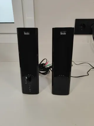 Altavoces amplificados de la marca Hercules. Cómo nuevos. De unos 25 cm de alto - Color negro. - Diseño vertical.