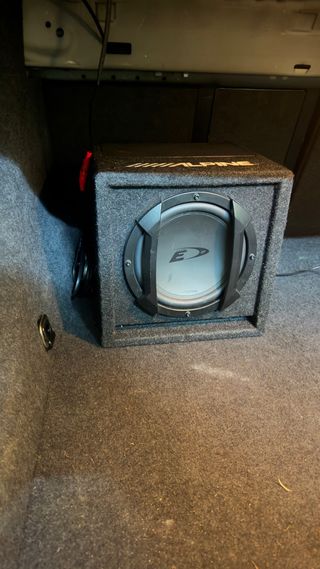 Subwoofer Alpine en acabado gris y negro. Tiene etapa de potencia incorporada - Incluye control remoto para ajustes. - Diseño compacto para fácil instalación. Incluye cableado muy poco uso lo vendo por que necesito espacio en el maletero