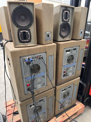 Vendo set profesional de sonido compuesto por hasta 4 altavoces autoamplificados Australian Monitor XR10P y sus correspondientes trípodes JB Systems. Equipos muy robustos, con una calidad de audio nítida y listos para sonar. Ideales para: Terrazas, locales de ensayo, eventos, gimnasios, DJs o monitorización de escenario. Características de cada unidad: Potencia: 100W RMS (Bi-amplificados). precio 95 cada uno con su soporte 180 pareja de dos con sus soportes 350 los 4 con sus soportes "Oportunidad: El valor de este set nuevo supera los 800 euros fácil . Te llevas equipo profesional a precio de gama básica