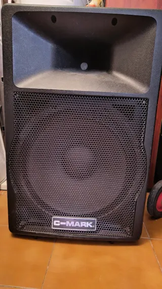 Altavoz autoamplificado de la marca C-MARK. 15 pulgadas, 550 watss Funciona perfectamente Es un tanque ruso, muy buenos graves, ya que son 15 pulgadas. No envios Entrega en mano, se puede probar - Color negro.