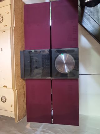 Se venden dos juegos de altavoces de la reconocida marca Bang & Olufsen. Estos altavoces destacan por su diseño elegante y moderno. - Diseño vertical. - Base circular plateada. - Acabado en color rojo y plateado. - set pequeño 300€ - set grande 500 € - CD Player 500 € - Mando a distancia 50€