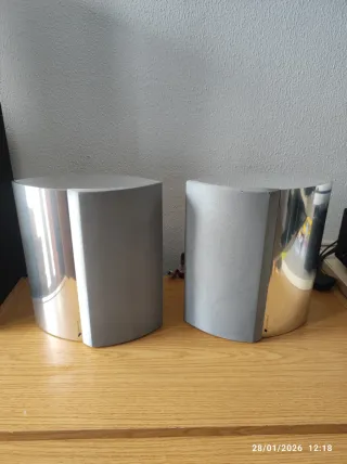 Altavoces de diseño elegante y sonido de alta calidad. Impresionante Beolab 12-3, pequeña marca en uno (mira la foto para ver el estado), con soportes de pared incluidos NO ENVÍO! - Acabado en plata pulida. - Diseño escultural y moderno.