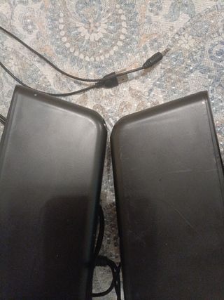 Altavoces en color negro. - Diseño triangular. - Altavoz central. - Tornillos de fijación visibles.