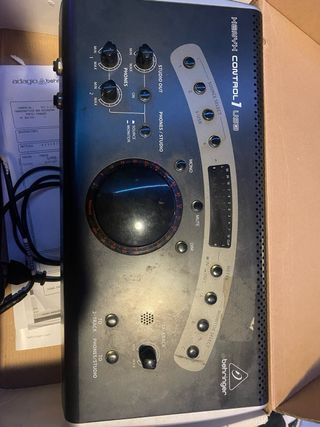 Controlador MIDI Behringer BCR2000. Dispone de múltiples potenciómetros y botones para controlar software de música. 32 potenciómetros rotatorios. 8 faders. Pantalla LCD. Conexión USB/MIDI.