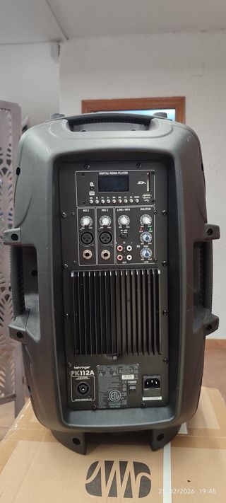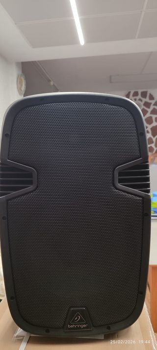 Modelo behringer b112 mp3. Con poco uso para dar conferencias. Funciona perfecto. Tiene alguna marca/arañazo por el transporte. Sistema de altavoces PA de dos vías con 1000 vatios de potencia. Reproductor mp3 a través de usb. Mezclador de dos cáñales con entradas de micro individuales.