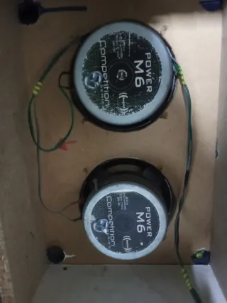 Altavoces Beyma de altísima calidad Dos beyma 6mi90, Tweeter beyma cp22, y filtro beyma f-100 que corta en 5khz. Cajas caseras puedo enviar video de ellas y sonando. Tiene un único problema y es que uno de los 6mi90 de uno de los altavoces suena más bajo. Puedo arreglarlo si se necesita. Posibilidad de vender piezas La mejor calidad que se puede tener solo los Tweeter ya valen 80€ cada uno Palabras clave: altavoces, Woofer, sonido, equipo, car audio, etapa, música, das audio, hk audio.