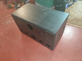 subwoofer pasa banda, con dos altavoces beyma de 4 ohmios "power 15" 600w cada uno. el cajón tiene ruedas traseras y patas de goma.