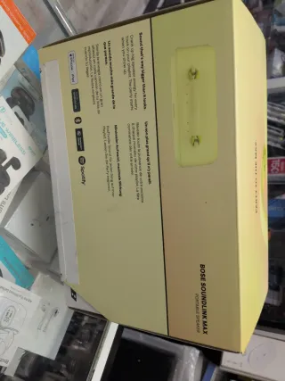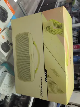 Altavoz portátil Bose SoundLink MAX en color beige y amarillo. Disfruta de tu música con este altavoz de alta calidad. - Diseño moderno y compacto. - Asa de transporte integrada.