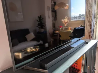 Barra de sonido Bose Soundbar 700 en color negro. En muy buen estado y funcionamiento perfecto. Destaca por su sonido equilibrado y potente, con excelente claridad en diálogos y escena sonora amplia. Características principales: - Diseño muy elegante, minimalista, en cristal templado y acabado metálico de alta calidad - Sistema de calibración acústica ADAPTiQ para ajuste automático a la sala - Personalización del sonido - Tecnología PhaseGuide para mayor sensación envolvente sin altavoces traseros - Compatibilidad con Dolby Digital y DTS - HDMI eARC, entrada óptica y Bluetooth - Control por voz integrado (Alexa y Google)