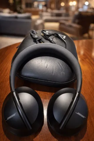 Auriculares Bose 700 en color negro. Incluyen su funda de transporte y cables. - Diseño elegante y moderno. - Funda protectora incluida. - Cables de carga y audio.