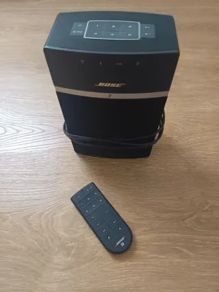 🔊 Sonido potente y de gran calidad en un tamaño compacto (calidad Bose). 📶 Conexión WiFi y Bluetooth para reproducir música desde móvil, tablet o PC. 🎛 Incluye mando a distancia original para controlar volumen, canciones y presets. 📱 Compatible con la app SoundTouch para streaming fácil. Muy cuidado, sin golpes ni fallos. Se vende por no usar.
