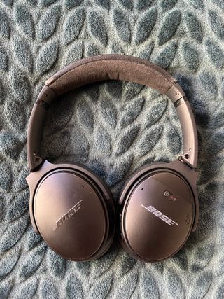 Auriculares Bose QuietComfort QC 35 II en color negro y gris. Incluyen su funda protectora. - Diseño over-ear. - Funda de transporte incluida. Se remplazaron los pabellones auriculares (a estrenar) y una bisagra del auricular (arreglado con alambre).